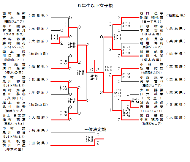 | GD5-5 | SUGIHARA B.C[•ºŒÉŒ§] | ’†‘º •ÉE•ì ˜a‰¹ | ‚Q | 21-16 21-14 | ‚O | ¼‘º ŠC“ÞE‹{“c ŽS | ‹vŒäŽR[‹ž“s•{] | |